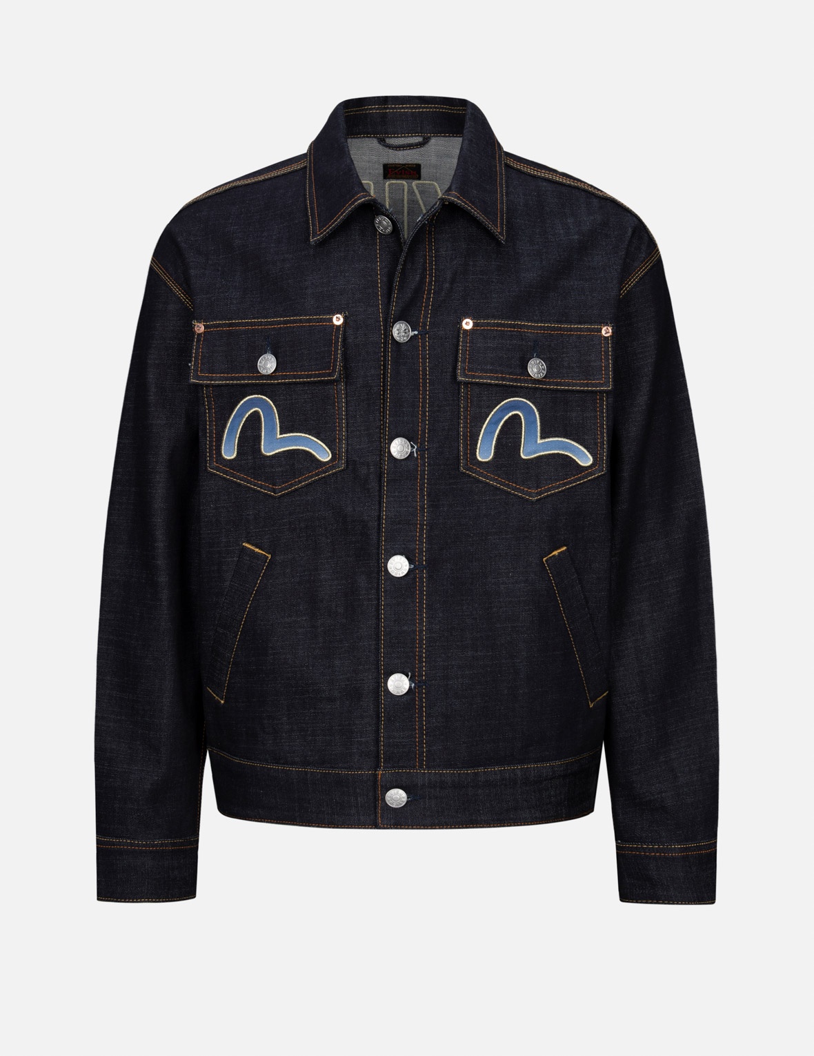 2EAHTM3DJ7007LFCS EVISU’s latest collection is infused with oriental reference, which is captured in the cloud and Kamon patterned Daicock print and embroidery of this denim jacket. It is made from weight denim for a loose fit, and has gradated seagulls and logo as branding execution. - 12.5oz denim - Loose fit - EVISU logo, seagull, Kamon and cloud pattern Daicock print and embroidery - 4 pockets, long sleeves, button fastening - Godhead leather patch - 99.5% Cotton, 0.5% Spandex FIT & STYLING: LOOSE CARE HAND WASH COLD INSIDE OUT MILD DETERGENT DO NOT BLEACH HANG DRY ONLY COOL IRON ON REVERSE SIDE IF NEEDED STEAM IRONING MAY CAUSE IRREVERSIBLE DAMAGE DO NOT DRY CLEAN DO NOT IRON ON PRINT
