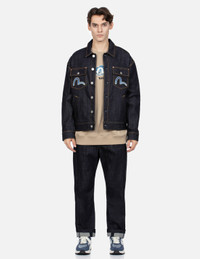 CLOUD AND KAMON-PATTERN DAICOCK PRINT LOOSE FIT DENIM JACKET