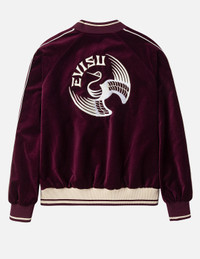 2EAHTM5JK1027XXSN This reversible design jacket redefines fashion classics with an avant-garde luxury stance! One side features deep red fabric adorned with crane gratitude and signature embroidery, exuding elegant charm; the other side showcases black fabric with an allover crane print paired with gold-thread seagull embroidery, unleashing Eastern mystique. Crafted from lustrous, premium fabric, the Japanese-inspired crane motif intertwines with multi-toned metallic threads, highlighting depth and creating a stunning fusion of trend and craftsmanship! - Regular fit - 100% Cotton - Reversible design - Crane and logo embroidery - Allover crane print and gold thread seagull embroidery - Zip fastening, ribbed trims - EVISU Japanese Kamon tag