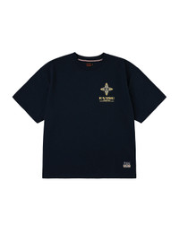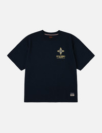 2EAHTM5TS1177LFCT The front of this T-shirt blends ninja dart elements with Kamon pattern, accented by a logo print, creating a striking and unique charm. The back design features the flying wings of the crane interwoven with a hand-brushed Daicock print, delivering a richly layered visual effect with a stunning three-dimensional feel, highlighting individuality and cultural flair. - Loose fit - 100% Cotton - Crane flying wings with Daicock print - Dart Kamon and logo prints - EVISU Premium Quality Kamon tag