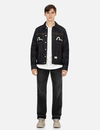 2EAHTM3JE119500DN EVISU’s black baggy-fit jeans enjoy a relaxed, wide-leg cut inspired by retro styles. They have undergone dark tone wash and finished with a faded ecru Daicock at the back. - Dark tone washed denim - 2000 Baggy fit - Daicock print - Button fly, 5 pockets - Godhead leather patch FIT & STYLING: 2000 BAGGY CARE HAND WASH COLD INSIDE OUT MILD DETERGENT DO NOT BLEACH HANG DRY ONLY COOL IRON ON REVERSE SIDE IF NEEDED STEAM IRONING MAY CAUSE IRREVERSIBLE DAMAGE DO NOT DRY CLEAN DO NOT IRON ON PRINT