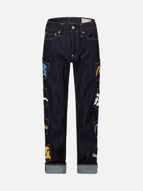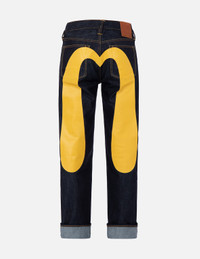2EAECM2JE99600CT Made from raw denim, EVISU’s baggy-fit jeans have an effortlessly cool vibe. Designed with a relaxed structure, its back panel is peppered with a mustard yellow Daicock - a classic feature of the fashion house’s denim jeans. - 2000 Baggy fit - Daicock print - Button fly, 5 pockets - Godhead leather patch - 100% Cotton FIT & STYLING: 2000 BAGGY CARE HAND WASH COLD INSIDE OUT MILD DETERGENT DO NOT BLEACH HANG DRY ONLY COOL IRON ON REVERSE SIDE IF NEEDED STEAM IRONING MAY CAUSE IRREVERSIBLE DAMAGE DO NOT DRY CLEAN DO NOT IRON ON PRINT