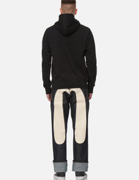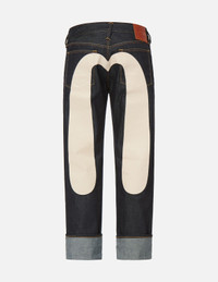 2ESHTM2JE91000CT Daicock jeans are a signature style for EVISU. This pair is made from pure cotton denim and printed with ecru Daicock across the back panel. Cut for a relaxing straight fit to channel a retro vibe, the pair is versatile with sweatshirts in your casual line-up. - Raw denim - 2000 Straight fit - Daicock print - 5 pockets - Button fly - Godhead leather patch - 100% Cotton FIT & STYLING: STRAIGHT CUT CARE MACHINE WASH COLD INSIDE OUT AND SEPARATELY GENTLE CYCLE DO NOT BLEACH HANG DRY ONLY COOL IRON ON REVERSE SIDE IF NEEDED STEAM IRONING MAY CAUSE IRREVERSIBLE DAMAGE DO NOT DRY CLEAN DO NOT IRON ON PRINT