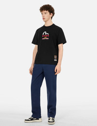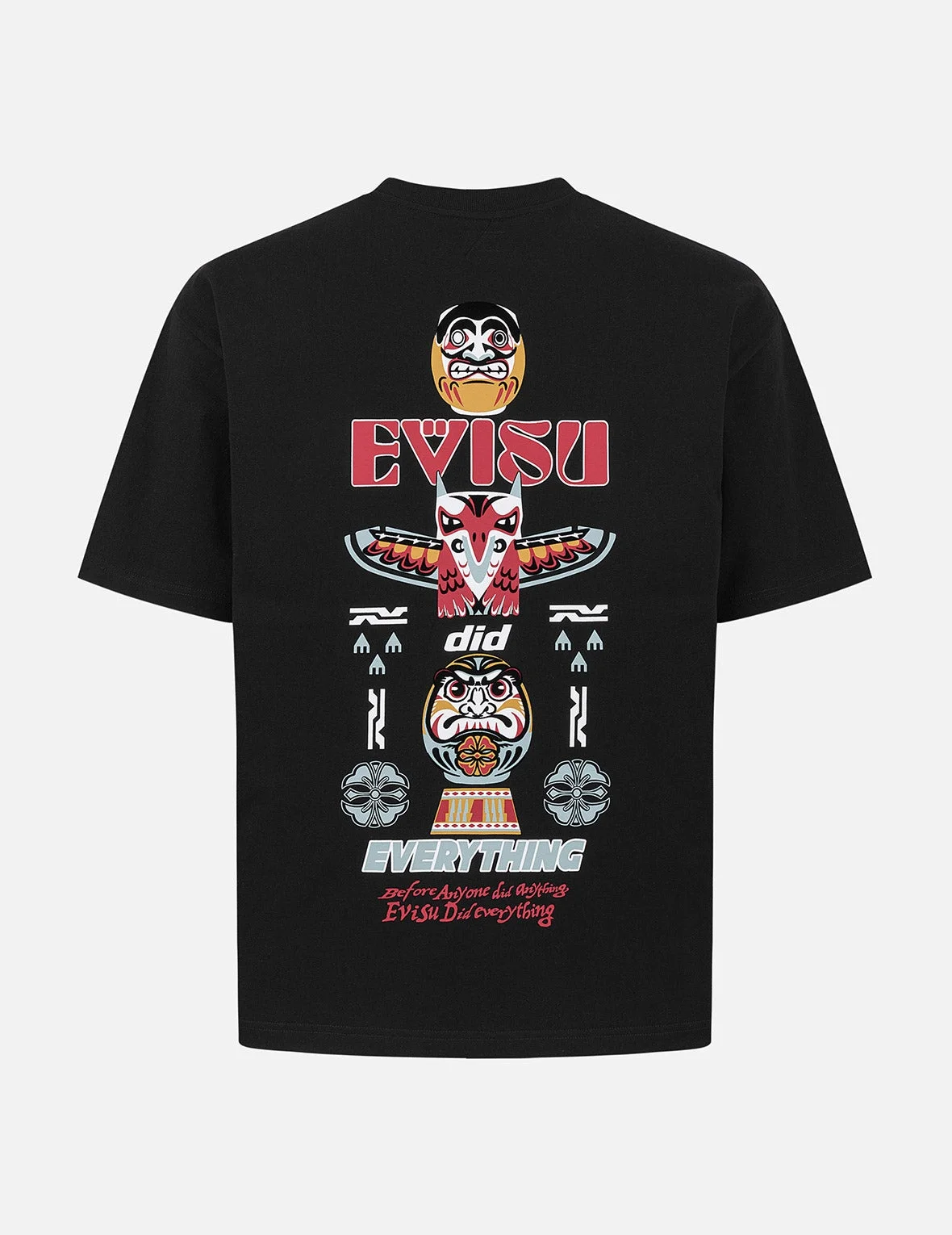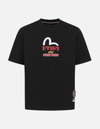 2ESHTM5TS1105RXCT Inspired by Indian totems, EVISU presents a unique charm through a series of thunderbird, Daruma, and EVISU totems. The design of this T-shirt cleverly incorporates the brand's original logo, Seagull, and Kamon patterns, creating a fusion of culture and fashion. - Relax fit - 100% Cotton - Daruma, Thunderbird, and EVISU totem prints - Logo, Seagull, and Kamon prints