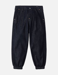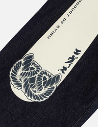 2EAHTM5JO1084LFDN EVISU showcases a perfect blend of fashion and culture. The denim joggers feature a Daicock print of the Daruma, combined with Japanese trees and architecture, along with elements of the Wheel of Wisdom. The accompanying cut-out slogan adds a modern touch while reflecting deep cultural significance. - Loose fit - 100% Cotton - Daruma and Wheel of Wisdom Daicock print - Button fly, 4 pockets
