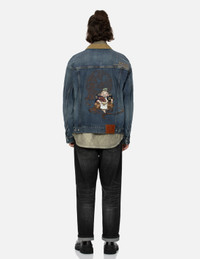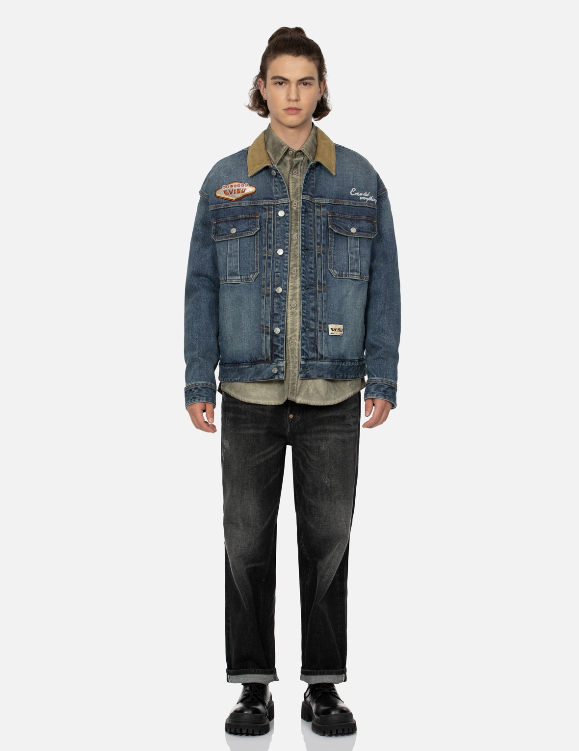2EAHTM4DJ8001LFDP This denim jacket is themed around the sea deity Ebisu, showcasing the unique design style of the brand. Embroidered on the back is a depiction of Ebisu wearing a straw hat and adorned in a hunting pattern garment, accompanied by various Japanese motifs. EVISU also pays attention to other detailed areas, such as embroidering brand logos and slogans on the left and right sides of the chest. The contrasting velvet material used on the collar adds depth to the overall design. FIT & STYLING: LOOSE CARE MACHINE WASH COLD INSIDE OUT AND SEPARATELY DELICATE CYCLE DO NOT BLEACH HANG DRY ONLY COOL IRON ON REVERSE SIDE IF NEEDED STEAM IRONING MAY CAUSE IRREVERSIBLE DAMAGE DO NOT DRY CLEAN DO NOT IRON ON PRINT
