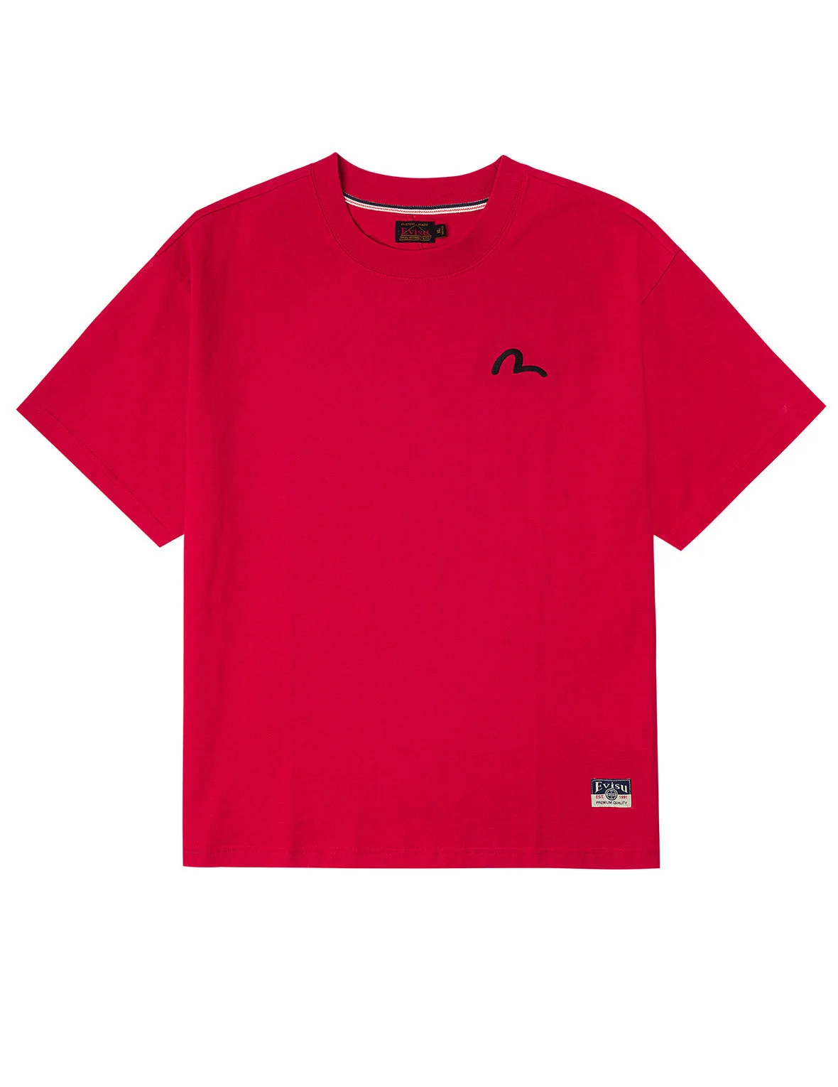 2EAHTM5TS1183RXCT This T-shirt in pristine white radiates a fresh, modern avant-garde charm! The lightweight seagull embroidery dances across it, adding artistic flair. With a relaxed wide-fit design, it’s both comfortable and stylish—wear it to effortlessly lead the trendsetting wave! - Relax fit - 100% Cotton - Seagull embroidery - EVISU Premium Quality Kamon tag