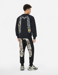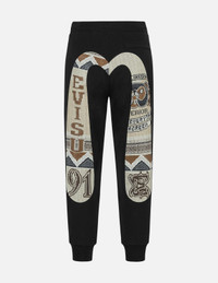 2EAHTM4SP1080XXCT A fusion of ethnic inspiration and modern fashion, these black sweatpants present a Daicock on the back, reflecting a Western aesthetic. The themed raccoon design and brand logo enhance their appeal, creating a warm and stylish statement piece for the season. - Regular fit - 100% Cotton - Ethnic style Daicock print - Elasticated waistband and cuffs, 3 pockets - EVISU Premium Quality Kamon tag