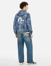2ESHTM5DJ1034LFDN Crafted with precision and innovation, this denim jacket showcases a lifelike fisherman Godhead motif using laser technology. Its light wash and smoky back design create a layered, Japanese-inspired look, complete with EVISU’s signature logo. - Loose fit - 100% Cotton - Fisherman Godhead laser print - Drawstring hood, zip fastening, and 4 pockets - EVISU Premium Quality Kamon tag