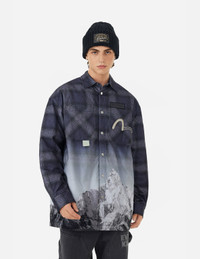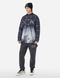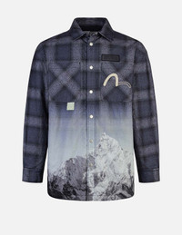 Flannel Check with Snow Mountian Print Relax Fit Shirt Jacket