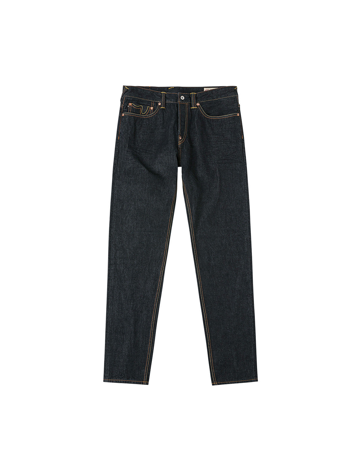 2EAHTM5JE121717DN This indigo denim jean channels a deep-toned avant-garde attitude, pulsing with trendsetting energy. The front pockets feature an inverted seagull embellishment, breaking norms with a fresh and striking detail; the back pockets steal the show with bold Godhead lion dance and EVISU logo prints, bursting with vibrant colors and playful flair, where art and rebellion ignite a unique spark. - 2017 Carrot fit - 100% Cotton - Godhead Lion Dance and logo print - Button fly, 5 pockets - Godhead leather patch