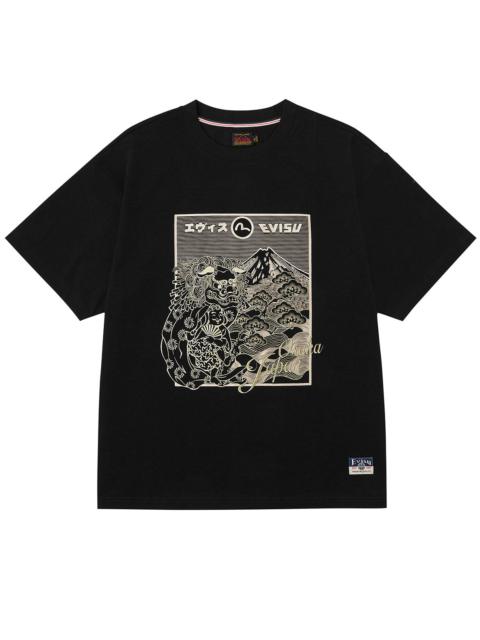 2EAHTM5TS1180RXCT This exquisite T-shirt masterfully weaves the elegance of Japanese heritage with contemporary fashion allure! The back showcases a striking Godhead lion dancer print, infused with deep cultural elements and a refined, whimsical design that captivates. Adorned with a denim pocket on the front, featuring Mount Fuji and a signature logo print, it marries vintage sophistication with luxurious texture. - Relax fit - 100% Cotton - Godhead lion dance print - Mount Fuji and logo print - EVISU Premium Quality Kamon tag