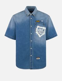 2ESHTM5DI1133RXDN Featuring a striking graffiti spray-dyed Daicock print, this denim shirt exudes urban culture and creativity. The "EVISU DID EVERYTHING" slogan on the pocket, complemented by the brand logo and Godhead patch, reinforces the brand identity, making it a must-have for those who embrace edgy and unique styles. - Relax fit - 92% Cotton, 6% Polyester, 2% Elastane - Graffiti spray-dyed Daicock print - "EVISU DID EVERYTHING" slogan print - Embroidery Godhead and logo patches - Button fastening, 1 pocket - EVISU Premium Quality Kamon tag