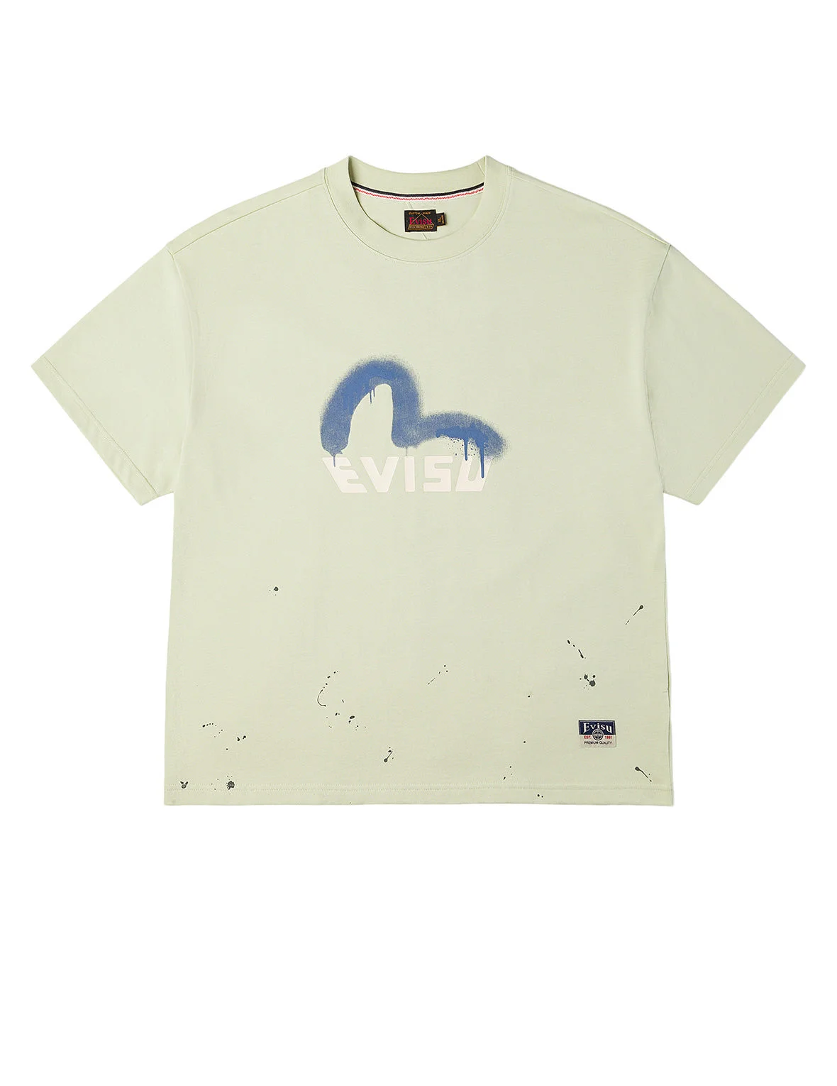 2EAHTM5TS1159RXCT This oversized casual T-shirt is crafted with a pure white base, exuding minimalist street style! The front features a vibrant purple graffiti-style seagull print as the highlight, paired with a striking logo, accented by a splash-ink design for an avant-garde artistic touch. Wear it to effortlessly define your trendsetting attitude and become the street's focal point! - Relax fit - 100% Cotton - Graffiti-style seagull and logo print - EVISU Premium Quality Kamon tag