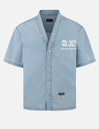 Hakutaku and Logo Print Fashion Fit Denim Baseball Shirt