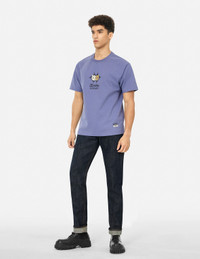 2ESHTM5JE100817DN Inspired by the auspicious mythical beast Hakutaku, symbolizing good fortune, these jeans offer a refreshing visual impact. Made from cotton denim, the back features a Daicock pattern with a textured laser print below, topped with intricate Kamon embroidery in vibrant colors. This layered design exudes luxury and elegance. - 2017 Carrot fit - 99% Cotton, 1% Elastane - Hakutaku Daicock embroidery - Button fly, 5 pockets - Godhead leather patch