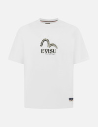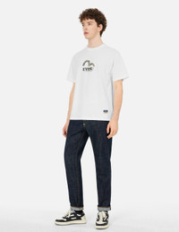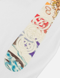 2ESHTM5TS1150RXCT This T-shirt features a brushstroke Seagull and cursive logo print on the front, while the Daicock print of Hakutaku on the back is the highlight of the design. Hakutaku strolls among the colorful clouds and auspicious patterns, bringing good fortune to people. The overall design is not only fashionable and avant-garde but also easily pairs with various casual styles. - Relax fit - 100% Cotton - Hakutaku Daicock print - Brushstroke Seagull and cursive logo print