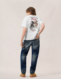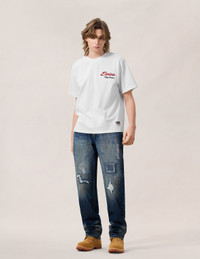 2ESHTM6JE105420DN Artistic hand-drawn graphics are printed across these jeans, along with the patchwork detail and distressed seagull motif, transforming classic denim into wearable art. Each print brings spontaneous energy and urban creativity to the timeless five-pocket silhouette. A canvas for self-expression that keeps it easy for everyday styling. - Regular fit #2020 - 100% Cotton - Hand-drawn print - Patchwork detail - Distressed seagull motif - Button fly, 5 pockets
