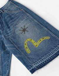2ESEJM6DS6012OSDN EVISU’s oversized cargo shorts feature heavy-washed denim with a soft, lived-in texture. The stars and Seagull motif adorned with stud details add bold flair, while the cargo pocket design and frayed cuffs amplify the relaxed, streetwise vibe. - Oversized fit - Shell: 100% Cotton; Pockets: 87% Polyester, 13% Cotton - Heavy washed finish - Studded star + Seagull motif - 6-pockets + cargo pocket design - Frayed cuffs - Zipper style