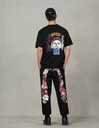 2EAHTM5TS1168RXCT This T-shirt interprets understated luxury with a deep black base, radiating bold sophistication! The back is decorated with a Henohenomohe Godhead print, featuring facial expression kanji highlighted by delicate embroidery to showcase refined craftsmanship. The front’s seagull and logo prints deliver a sharp contrast, exuding a cutting-edge attitude that sets you apart on the streets! - Relax fit - 100% Cotton - Henohenomohe Godhead embroidery and print - Seagull and logo print - EVISU Premium Quality Kamon tag