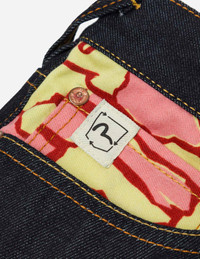 2EAHTM4JE116410DN EVISU's designers blend style with sustainability, crafting jeans that resonate with a green vision. These jeans feature a striking military-style Ishigaki camouflage with the iconic Daicock, complemented by the brand logo and seagull motif. An eco-themed label on the coin pocket reinforces their commitment to a sustainable future. - 2010 Slim fit - 100% Cotton - 12.5 oz denim - Ishigaki camouflage inserted Daicock - Button fly, 5 pockets - Godhead leather patch With any purchase of the latest Ishigaki Camouflage item, you will receive a complimentary multi-functional tote bag. Each bag features a unique camouflage pattern and color, showcasing your distinctive personal style. Gifts are available while stocks last.