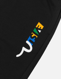2ESHTM5SP1174XXCT Combining practicality and trendiness, these regular-fit joggers showcase intricate Kamon and Daruma embroidery on the back pockets, infusing a unique cultural essence. The front pockets highlight a vertical EVISU logo and seagull design, creating a personalized aesthetic. With comfortable fabric and a classic silhouette, these joggers are perfect for any setting, allowing you to express your fashion-forward style. - Regular fit - 100% Polyester - Kamon and Daruma embroidery pockets - Elasticated waistband and cuffs, 3 pockets - EVISU Premium Quality Kamon tag