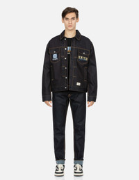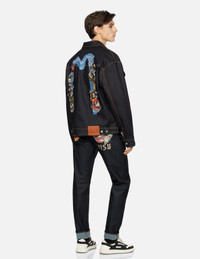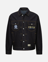 2EAHTM3DJ1007LFCT Taking reference from Kabuki culture and nordic art, EVISU’s denim jacket is emblazoned with a brushstroke Daicock print with Kumadori Daruma embroidery at the back, while the chest pockets are embroidered with Fair Isle style snowflake Kamon and logo. - Loose fit - Kumadori Daruma pattern Daicock print and embroidery, snowflake Kamon and logo embroidery - Long sleeves, button fastening, 4 pockets - Godhead leather patch - Custom Made EVISU Heritage tag - 100% Cotton FIT & STYLING: LOOSE CARE HAND WASH COLD INSIDE OUT MILD DETERGENT DO NOT BLEACH HANG DRY ONLY COOL IRON ON REVERSE SIDE IF NEEDED STEAM IRONING MAY CAUSE IRREVERSIBLE DAMAGE DO NOT DRY CLEAN DO NOT IRON ON PRINT