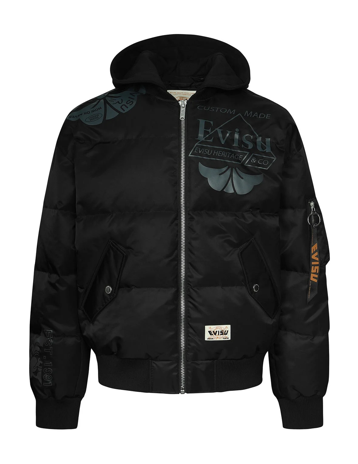 Logo and Kamon Print Loose Fit Bomber Down Jacket
