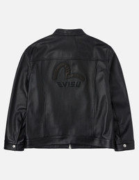 Logo and Seagull Embroidery Regular Fit Leather Jacket
