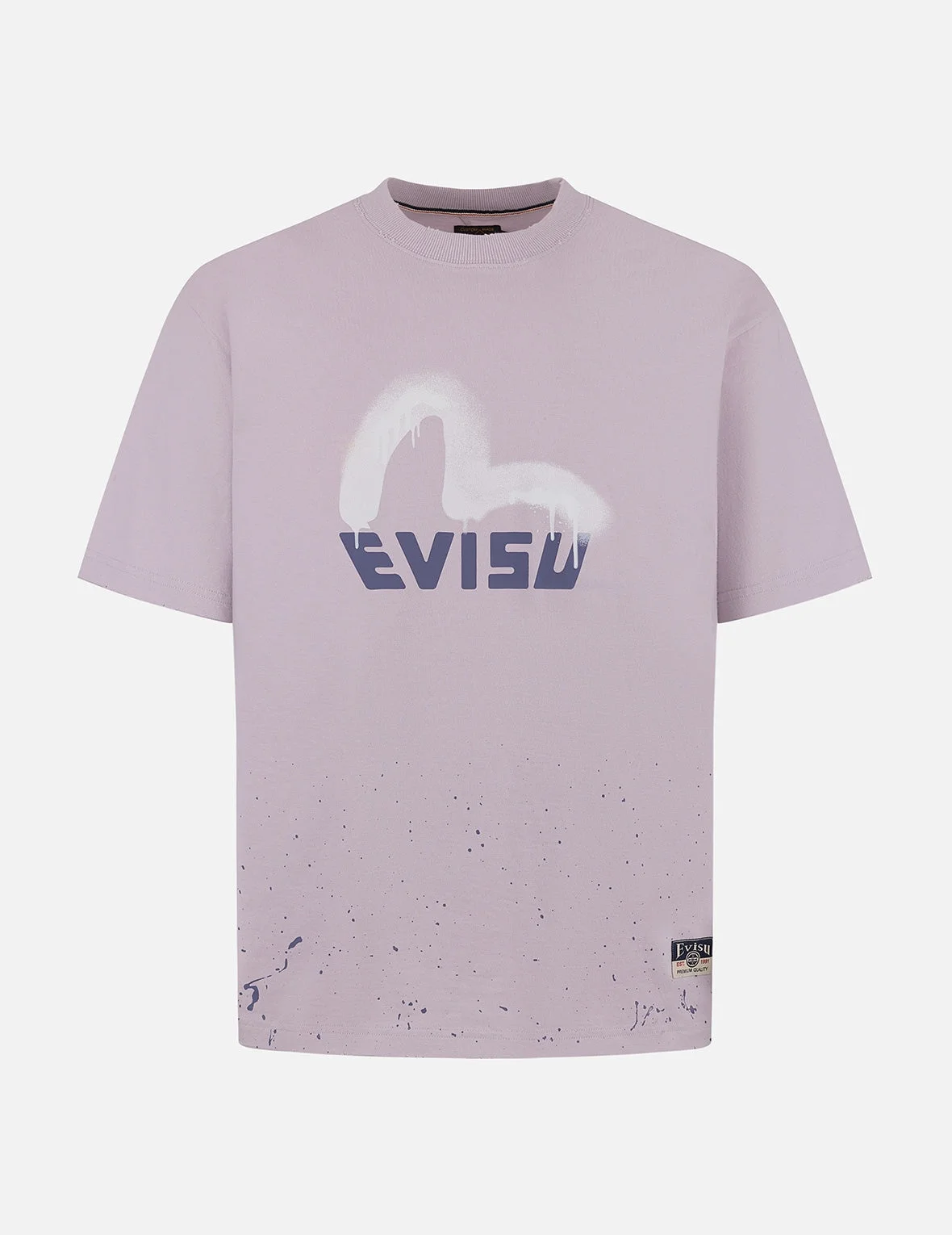 2ESHTM5TS1136RXCT Inspired by street culture, this EVISU T-shirt features a logo print paired with a graffiti-style Seagull, and the bottom is adorned with splattered ink, showcasing a unique street style and personality. - Relax fit - 100% Cotton - Logo and Seagull print