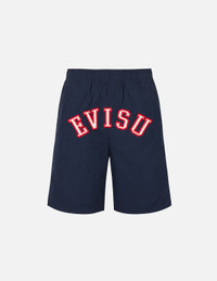 2ESHTM5SH7042FFSN Featuring a timeless silhouette with bold red-trimmed EVISU logo applique embroidery on the front, these wide-cut shorts blend streetwise attitude with effortless comfort. Crafted from breathable fabric for all-day ease, they're your go-to for casual versatility. - Relax fit - 100% Polyamide - Logo applique embroidery - Elasticated waistband, 3 pockets
