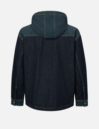 Logo Print Loose Fit Hooded Denim Shirt Jacket