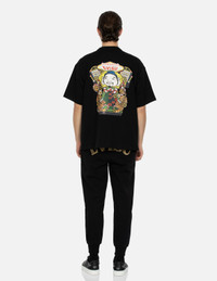 2EAHTM4TS8054LFCT Made with high-quality materials, this T-shirt is comfortable and durable. The front features a brand logo print, while the back incorporates elements symbolizing luck and prosperity, such as slot machines and gold coins, along with a dazzling Buddha head lamp, creating a holiday and gaming atmosphere. Additionally, the print technique with an optical illusion style creates a visual effect of depth and dimension, showcasing your unique sense of fashion. FIT & STYLING: LOOSE CARE MACHINE WASH COLD INSIDE OUT AND SEPARATELY DELICATE CYCLE DO NOT BLEACH HANG DRY ONLY COOL IRON ON REVERSE SIDE IF NEEDED STEAM IRONING MAY CAUSE IRREVERSIBLE DAMAGE DO NOT DRY CLEAN DO NOT IRON ON PRINT