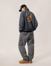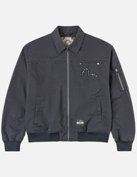 2ESHTM6JK1017RXSN This bomber jacket blends military heritage with edgy street details. Metallic studs on the chest form a striking seagull pattern, while the back features flaming Kamon and EVISU studded logo, creating a tough, textured look that helps you stand out from the crowd. - Relaxed fit - 55% Polyamide, 45% Cotton - Metal stud seagull and brand logo - Flaming Kamon print - Front zip fastening, 4 pockets