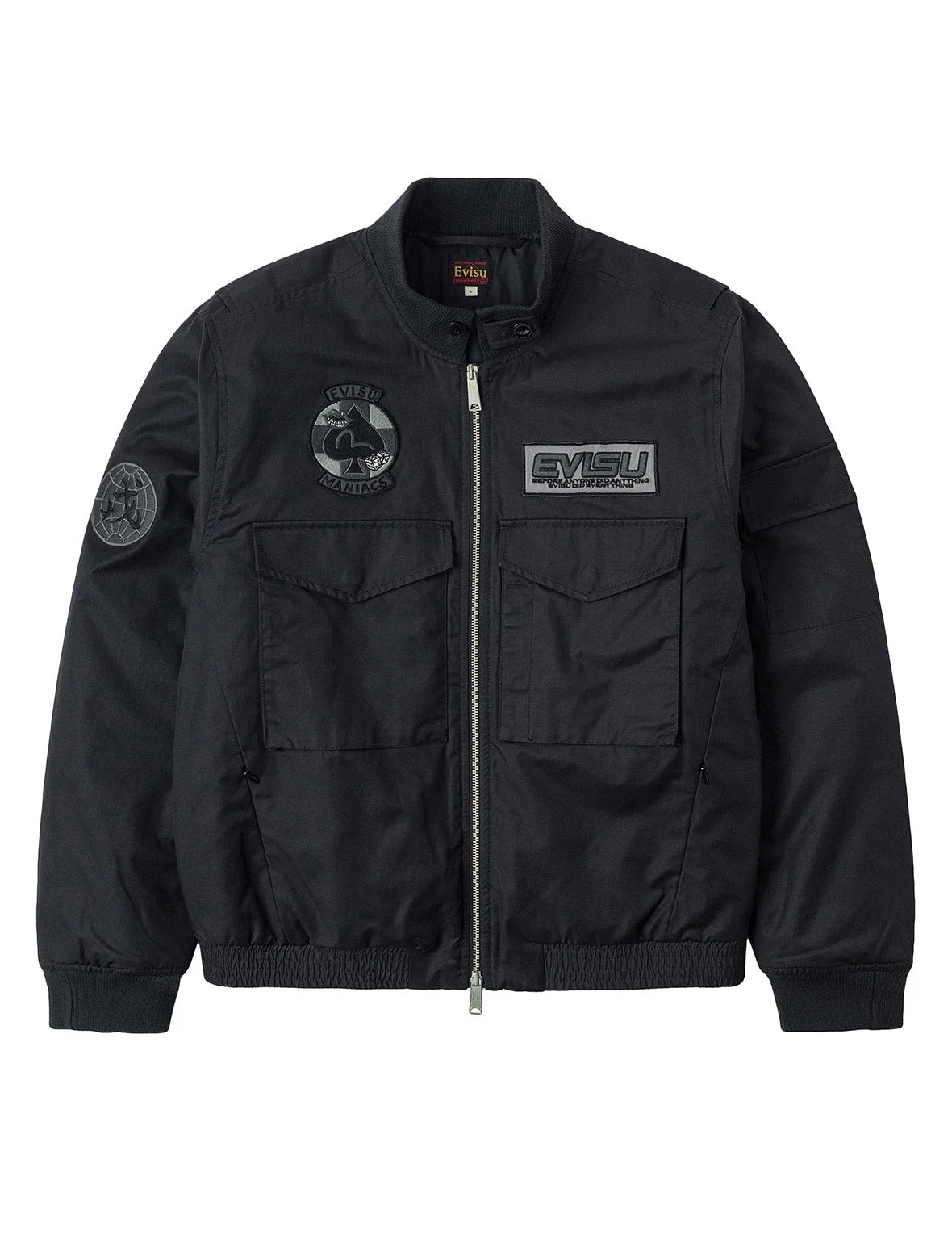 2EAEJM5JK6100XXCQ This richly detailed bomber jacket is undoubtedly the ultimate choice for the trend-savvy you! The front chest is adorned with multi-brand element embroidered patches, bursting with individuality, while the two large patch pockets blend functionality with chic style. The seagull applique on the back adds an artistic flair, and the Two-way zipper allows for effortless adjustments. With its exquisite detailing, it seamlessly fuses fashion and durability, showcasing your unique attitude! - Regular fit - 54% Cotton, 46% Polyester - Multi logo badges embroidery - Seagull applique - Two-way zip, 4 pockets, ribbed trims