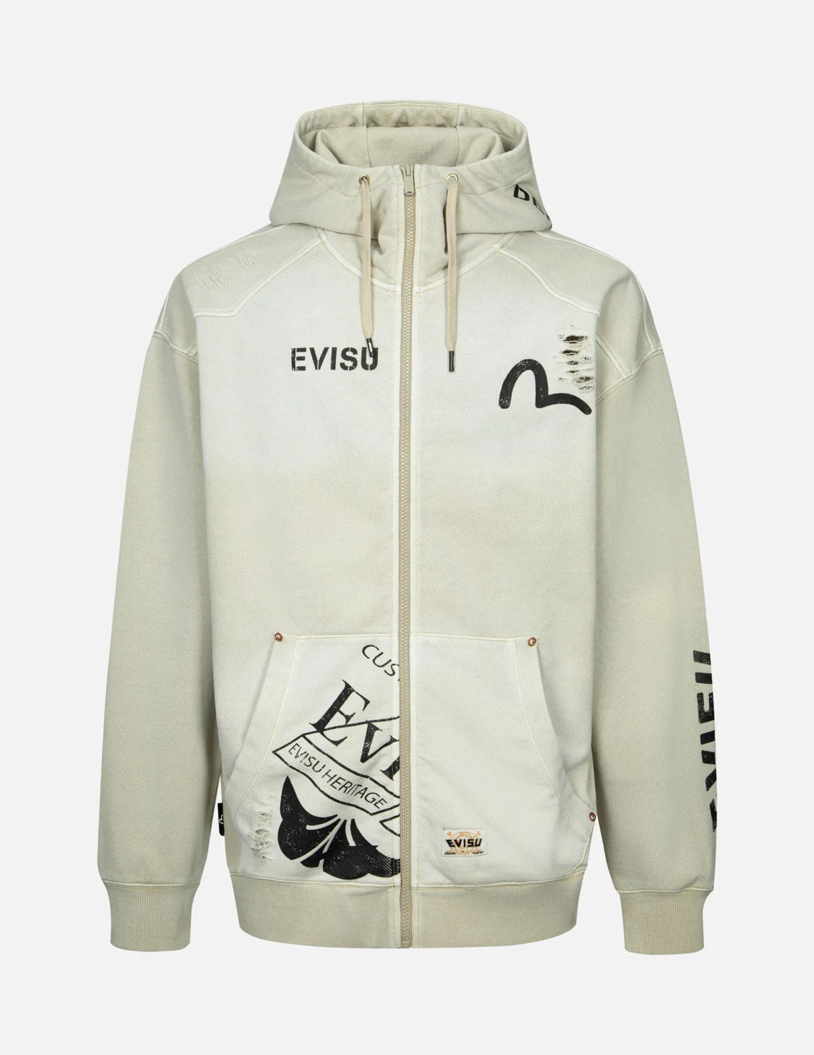 Multi Logos Print Loose Fit Washed Zip-Up Hoodie