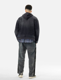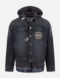 2EAGNM4JK5067RXCQ EVISU intentionally explores the layering effect with this jacket, featuring three different lengths of exposed fabric at the bottom, creating a stylish impression of wearing three tops at once. The design not only emphasizes fashion but also offers practicality with multiple pockets for convenient storage. Additionally, the exquisite Kamon embroidery adds a unique character, achieving a perfect balance between functionality and style. - Relax fit - 100% Cotton - Kamon embroidery - Multi-pocket design - Removable hood