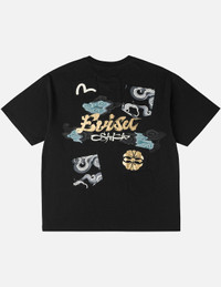 2ESHTM6TS1099RXCT This T-shirt features EVISU Osaka-themed design, the back showcases gold handwritten "EVISU Osaka" lettering with Japanese cloud patterns, paired with multiple decorative patch pockets featuring foil-printed seagull, cloud motifs, and Kamon. It blends regional culture with street style. - Relax Fit - 100% Cotton - Osaka Cloud Print & Patchwork Pockets - Crew neck