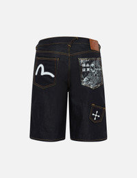 2ESHTM4DS7052RXDN If you are a loyal supporter of EVISU, you will recognize this design at first glance. These denim shorts are loosely cut with multiple pockets on both sides. The pockets are embroidered with seagulls and printed with the Kamon and carp patterns, showcasing the brand elements. FIT & STYLING: RELAX CARE HAND WASH COLD INSIDE OUT MILD DETERGENT DO NOT BLEACH HANG DRY ONLY COOL IRON ON REVERSE SIDE IF NEEDED STEAM IRONING MAY CAUSE IRREVERSIBLE DAMAGE DO NOT DRY CLEAN DO NOT IRON ON PRINT