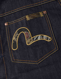 2EAHTM5DJ1005RXDN This denim jacket is crafted with exquisite technique, blending traditional Japanese artistry with modern streetwear trends, featuring luxurious brocade patches and a multi-pocket design. The metallic threads and intricate embroidery create a striking contrast against the premium denim, exuding timeless elegance and bold fashion. Designed for fashion enthusiasts, the fine fabric, reinforced stitching, and custom buttons are perfectly combined, offering both durability and a luxurious feel, suitable for daily wear or elegant occasions. - Relax fit - 100% Cotton - Multi-Pocket design with brocade patch - Japanese jacquard Seagull - Button fastening - EVISU Japanese Kamon tag - Godhead leather patch