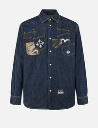 Multi-Pocket with Brocade Patch Relax Fit Denim Shirt