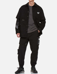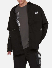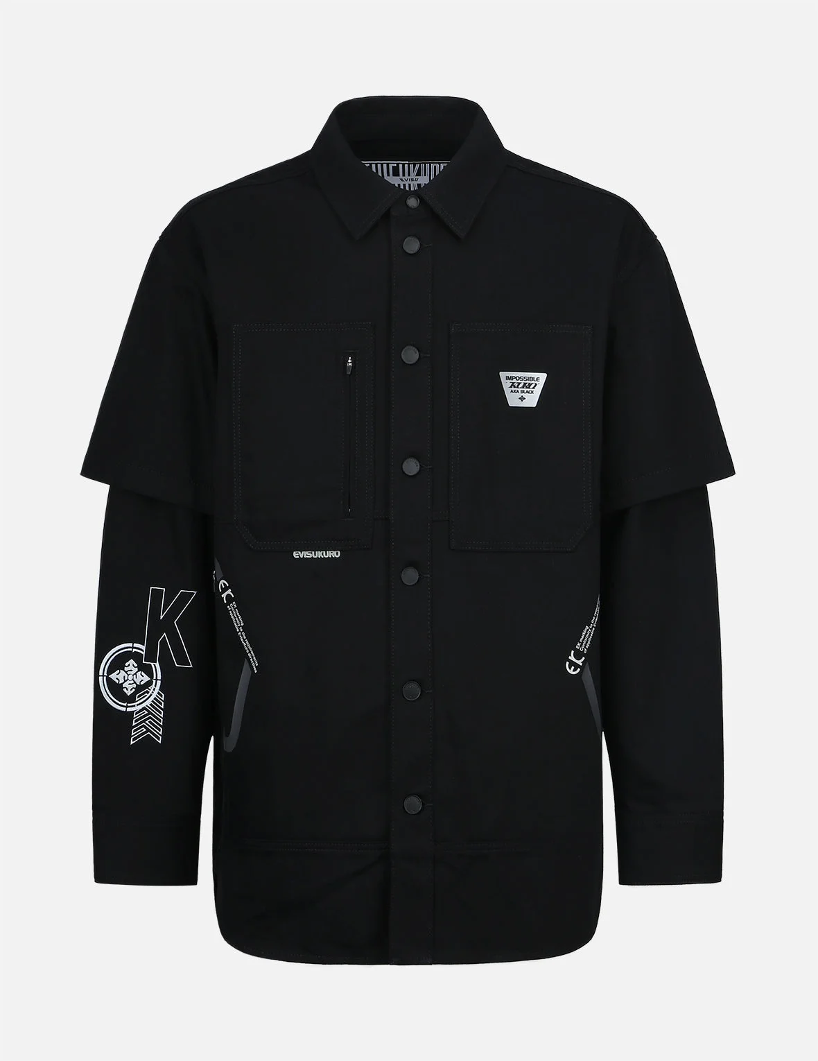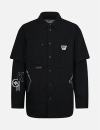 2EAGNM1SJ151LFDN The reflective seagull print on this denim overshirt is finished with a splash of neon paint to upgrade your look with an artistic flair. It is then generously adorned with EVISUKURO's iconic prints and embroideries to create a stylish signature look. - 100% Cotton - Loose fit - Mock 2-in-1 design - Neon splash seagull print - Logo, Kamon and symbol embroideries - Slogan and "K" prints - 2 pockets and 2 zip pockets