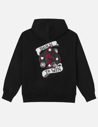 2ESHTM6SW1237RXCT Delicately embroidered EVISU chip detailing decorates the chest, while the back features large playing card motifs and Daruma graphic. The bold outlines, lettering and seagull elements each apply different embroidery techniques, artfully combining fine craftsmanship with a playful theme. The hood drawstring uses a sporty black-and-white jacquard tape, making this zip-up hoodie an ideal versatile outer layer for the changeable weather of spring. - Relaxed fit - 100% cotton - Multiple embroidery techniques - Playing card, Daruma, seagull and EVISU logo elements - Two-way front zip fastening, hood with drawstring - Ribbed cuffs and hem