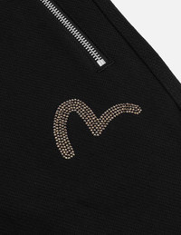 2EAHTM4SP7061RXCT Blending comfort and versatility, these sweatpants feature a dazzling seagull decoration adorned with rhinestone embellishments on the left, adding a touch of visual flair. The practical zip pockets greatly improves the functionality. The discreet EVISU brand label on the back subtly accentuates the casual, stylish vibe of these pants. - Relax fit - 85% Cotton, 15% Polyester - Rhinestone seagull print - Elasticated drawstring waistband and cuffs, 4 pockets - EVISU Premium Quality Kamon tag