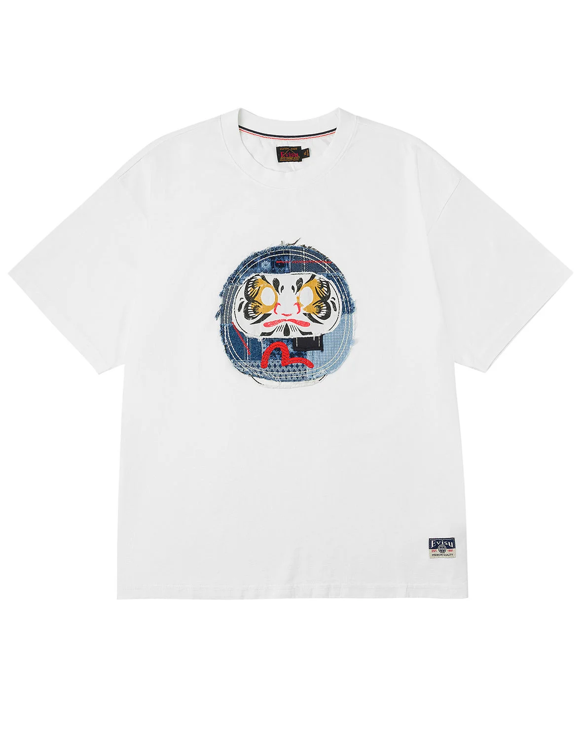 2EAHTM5TS1171RXCT This T-shirt bursts with vibrant green energy, unleashing bold natural vibes! The front is accented with Sashiko-embroidered Daruma and seagull details, creating a striking fusion of nature and art that redefines avant-garde fashion. Slip it on to command the streets with swagger and become the center of attention! - Relax fit - 100% Cotton - Sashiko Daruma and Seagull - EVISU Premium Quality Kamon tag