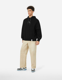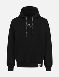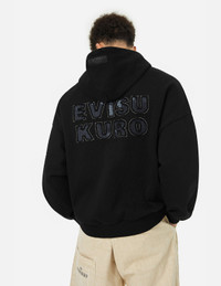 2EAGNM4SW5006OSCT EVISU employs the Sashiko embroidery applique to cleverly showcase the brand logo on the back, deliberately distressing the surface fabric to create a unique destroyed style. The front is adorned with intricate seagull prints, while the drawstring features a contrasting color design, adding a touch of fashion and personality to the overall look. - Oversized - 100% Cotton - Sashiko embroidery applique and Seagull print - Drawstring hood, kangaroo pockets, ribbed trims