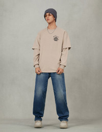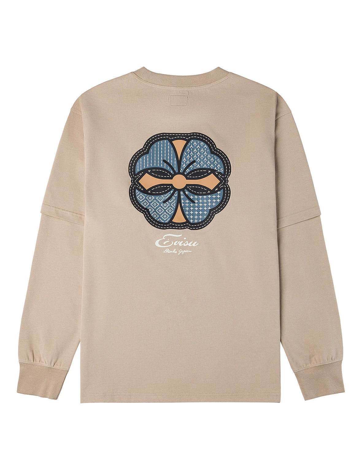 2EAHTM5TL1197FFCT This 2-in-1 long-sleeve T-shirt features a Kamon and logo print on the front, while the back showcases a stitched-style Kamon design. Whether for casual outings or everyday wear, it adds a stylish touch to your look. - Fashion fit - 100% Cotton - Kamon and logo print - Sashiko-style Kamon print - 2-in-1 design