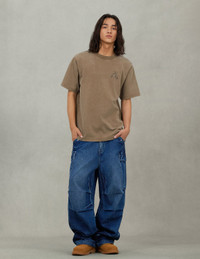2EAEJM5TS6112RXCT This oversized casual T-shirt in a deep brown tone leads the retro trend! The subtle "Ebisu" character on the chest is understated yet eye-catching, while the EVISU logo and "Ebijuya" text on the back add a modern edge. The loose fit and soft fabric blend effortlessly, creating a cool street vibe that showcases your bold attitude! - Relax fit - 100% Cotton - Seagull and "Ebisu" prints