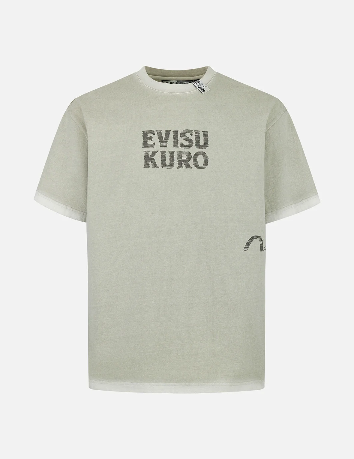 2ESGNM5TS5032RXCT Crafted from washed fabric, this oversized casual T-shirt provides a comfortable, breathable, and soft feel. The front showcases a seagull design and brand logo, enhancing its fashionable appeal. The sleeves are printed with EVISU and KURO logos on the back, highlighting the brand's distinctive identity. - Relax fit - 100% Cotton - Seagull and logo print - EVISUKURO label