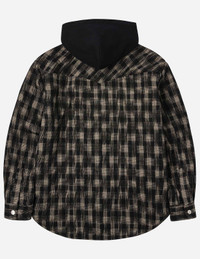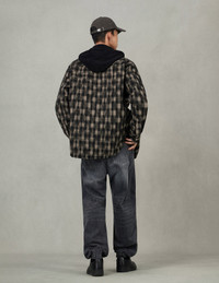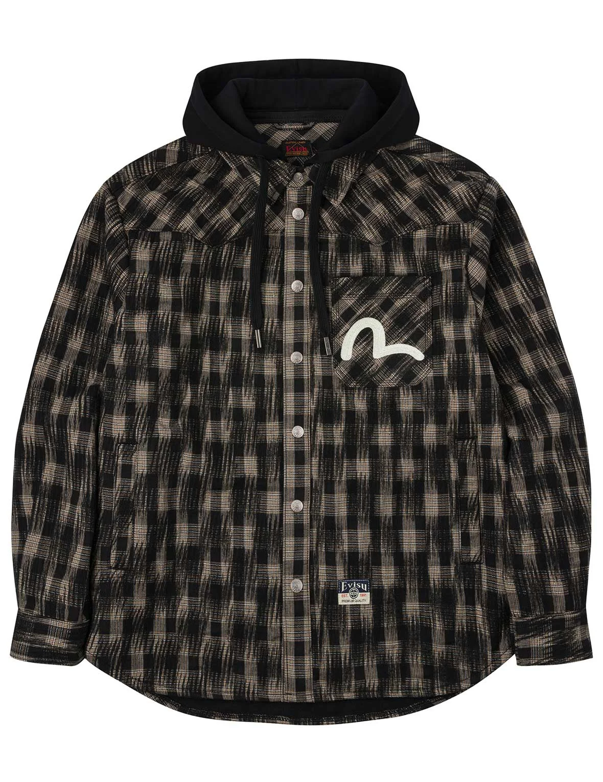 Seagull Embroidery Relax Fit Hooded Checked Shirt Jacket